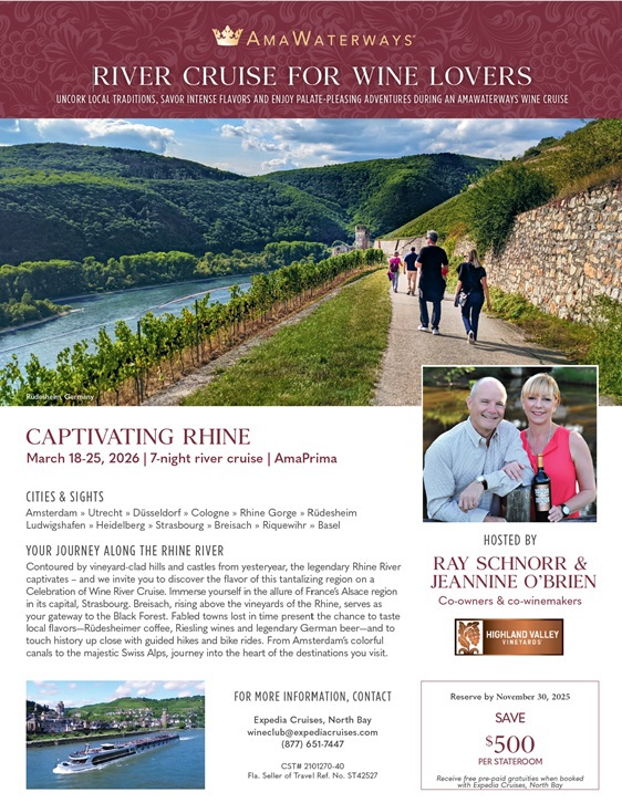 Highland Valley Vineyards is open noon to five (six in summer), weekends. Stop in to enjoy our award-winning wines. Walk-ins welcome!
